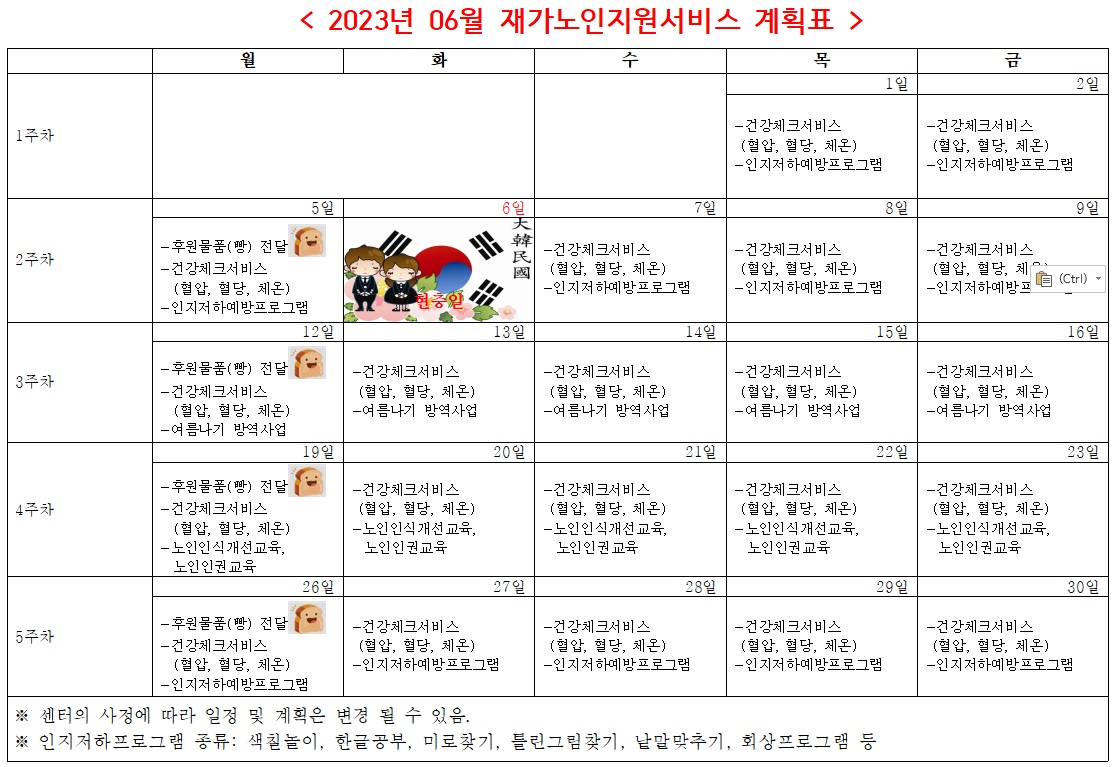 2023년 06월 프로그램 제공 계획표