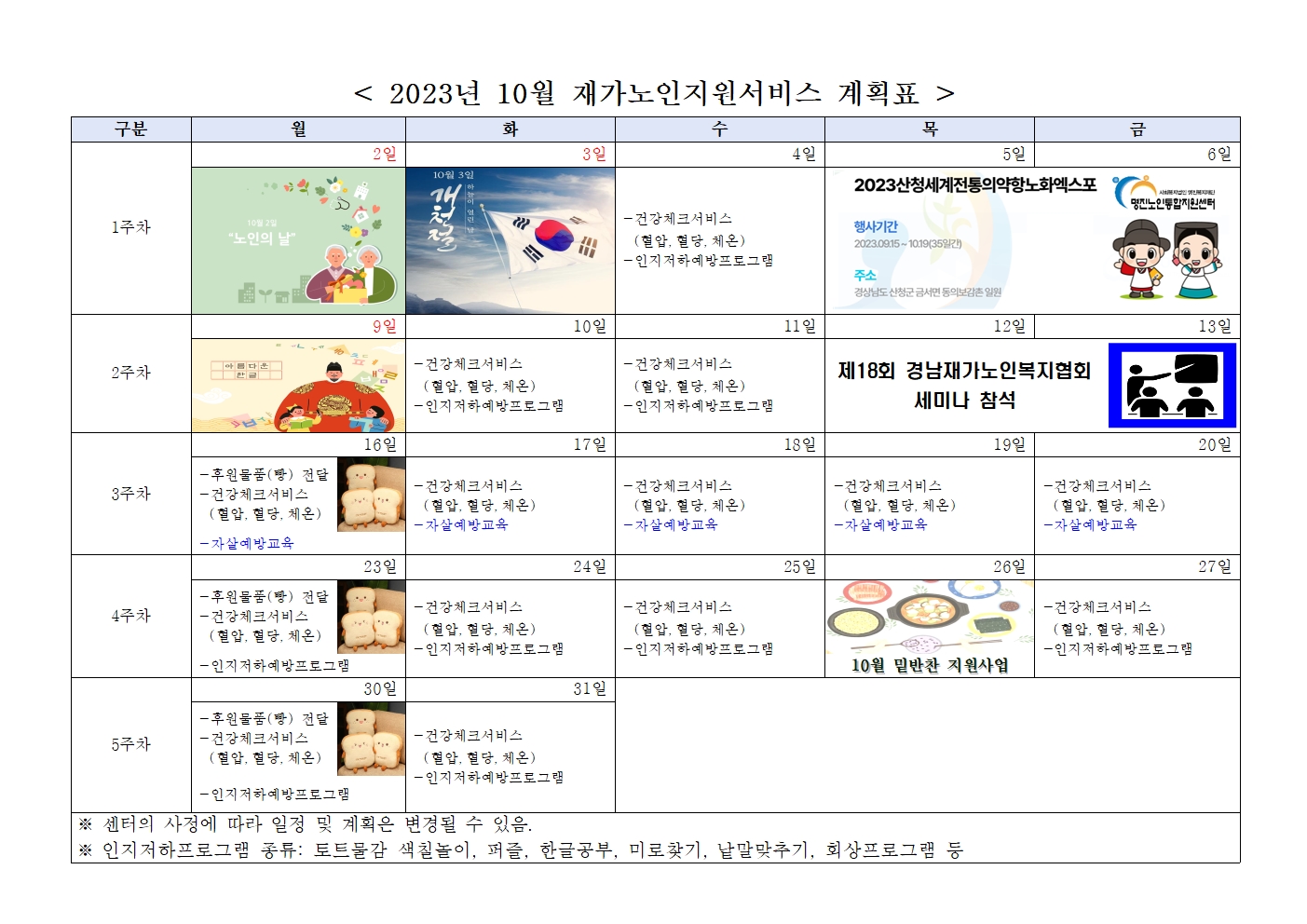 10월 프로그램 제공 계획표