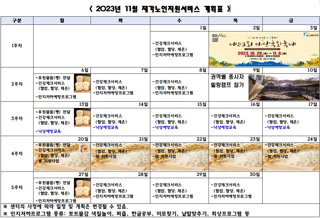 11월 프로그램 제공 계획표