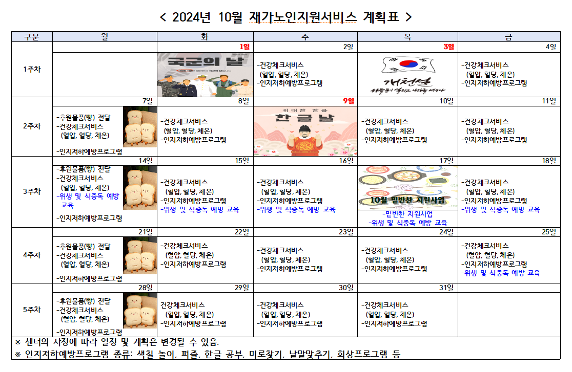 2024년 10월 프로그램 제공 계획표