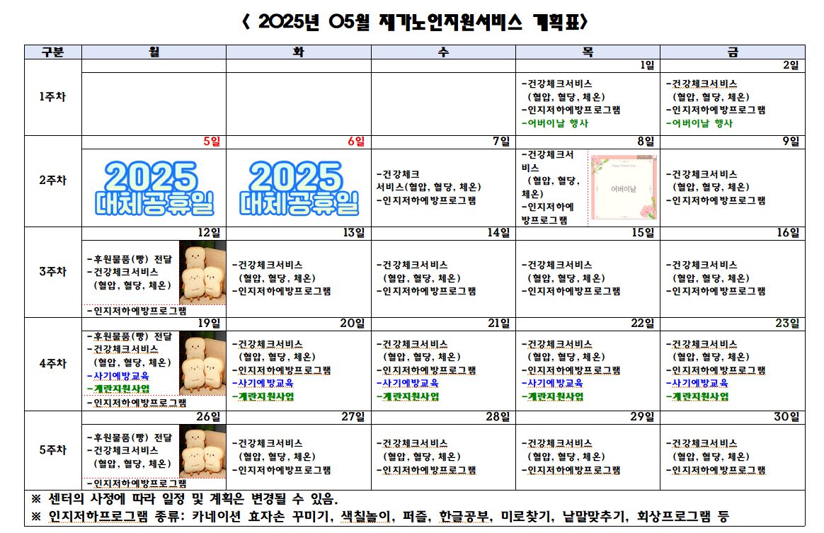 2025년 05월 프로그램 월간계획표