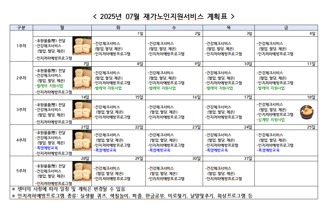 2025년 07월 프로그램 월간계획표