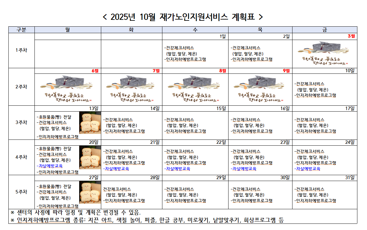 2025년 10월 프로그램 월간계획표