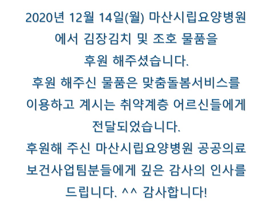 마산시립요양병원 김장김치 및 조호 물품 후원