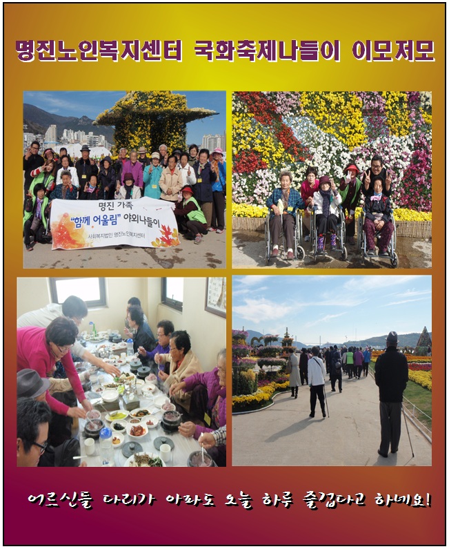 재가서비스이용대상자 중 참가 희망하는 어르신을 대상으로 2012년 ‘가고파 국화축제’ 야외나들이를 다녀왔습니다. 매년 열리지만
