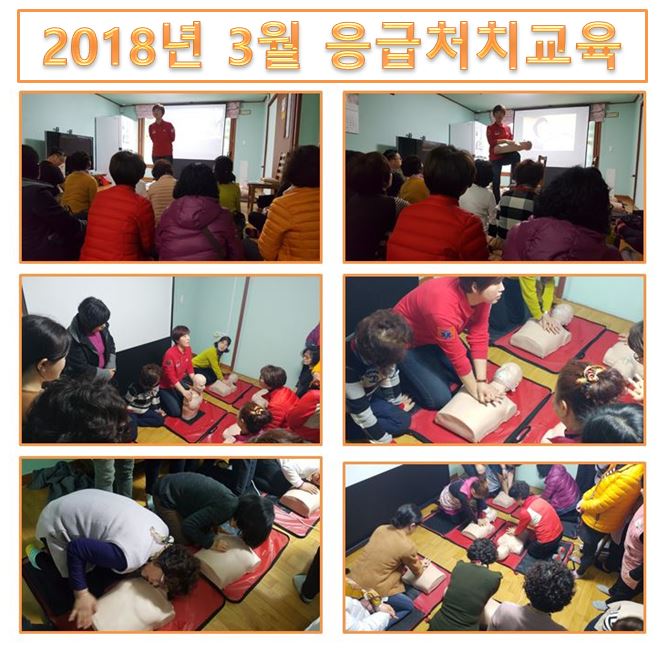 2018년 3월 7일 명진노인요양원에서 전 직원을 대상으로 응급처치교육을 실시하였습니다.심폐소생술과 하임리히요법, 기타 응급처치 방법 등을 익혔으며, 실전대비를 위한 연습의 시간도 가졌습니다.교육을 통해 응급 상황 발생 시 대처능력과 자신감을 가질 수 있는 기회가 되었습니다.항상 어르신들의 안전을 위해서 노력하는 센터가 되도록 하겠습니다.감사합니다.^^