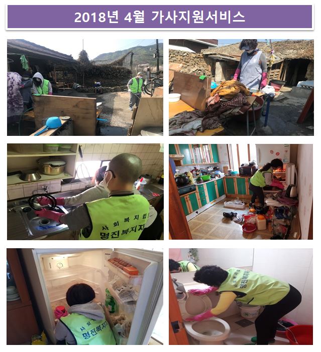 4월 한 달간 이러한 어르신들을 대상으로 위생 및 청소상태를 집중 점검하였고, 청소가 시급한 어르신들을 선별하여 청소 및 세탁 등의 서비스를 제공해드렸습니다.