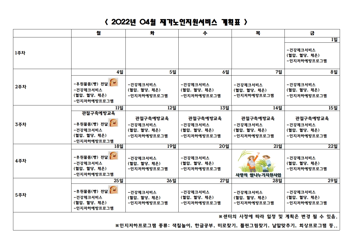 2022년 04월 프로그램 제공 계획표