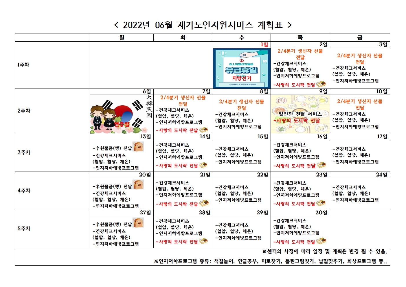 2022년 06월 프로그램 제공 계획표