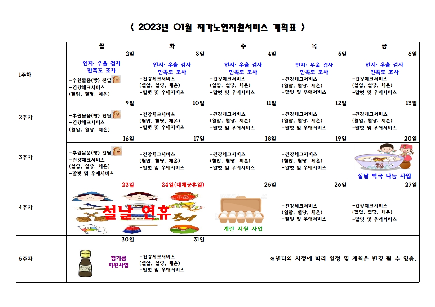 2023년 01월 프로그램 제공 계획표
