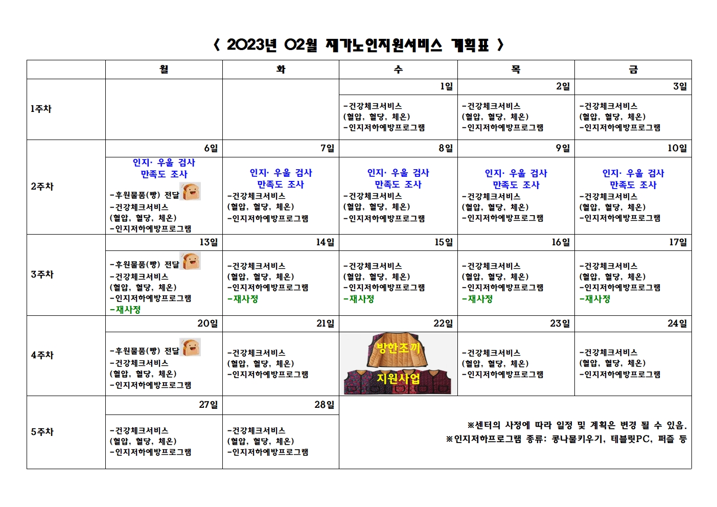 2023년 02월 프로그램 제공 계획표