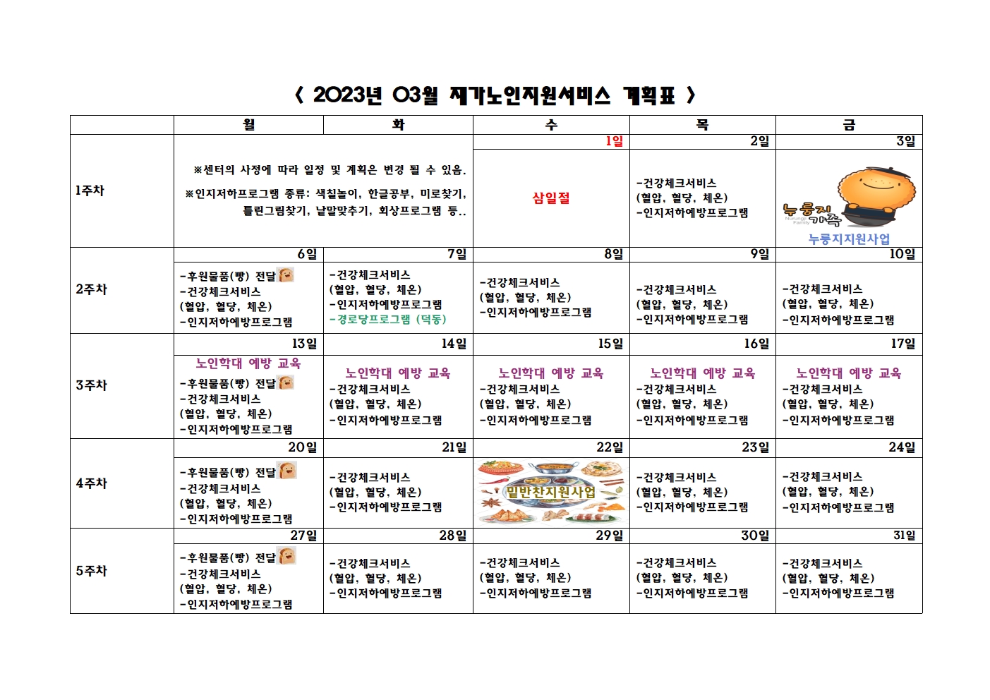 2023년 03월 프로그램 제공 계획표