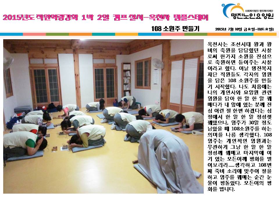 2015년도 직원역량강화 1박 2일 캠프실시-옥천사템플스테이
