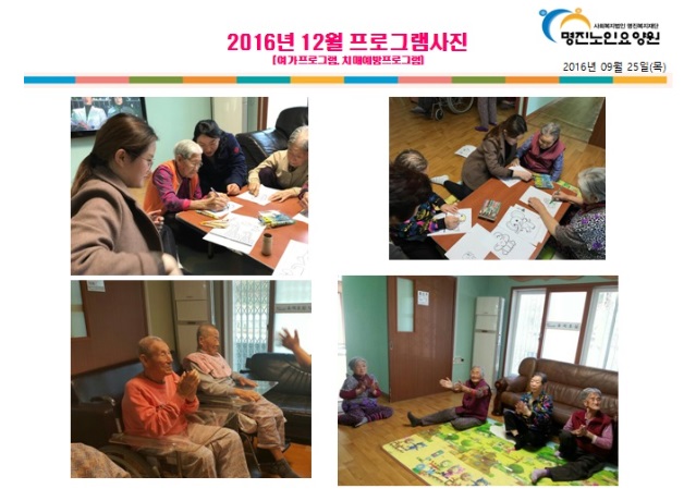 날씨가 추워 실내 프로그램위주로 진행하였으며,어르신들과 소통하여 원하시는 프로그램을 위주로 진행 하였습니다.프로그램을 진행하는 동안에 어르신들과 직원들이 함께 웃고 즐겨즐거움이 있는 원이 될 수 있었습니다