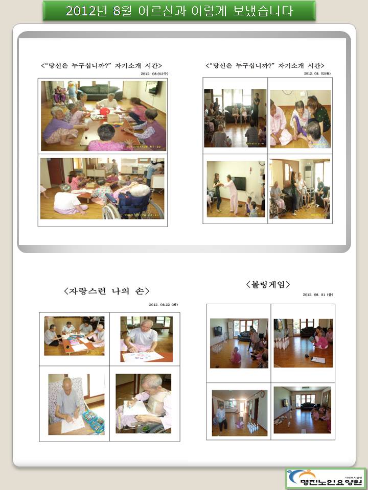 이분들께 어떻게하면 좀 더 즐거움을 선사할까 항시 고민합니다. 프로그램을 진행하다보면 참 재밌습니다. 아이와 같은 동심을 가진 분들이기에 사랑할 수 있습니다. 항상 건강하시고... 웃음을 드리도록 노력하겠습니다.