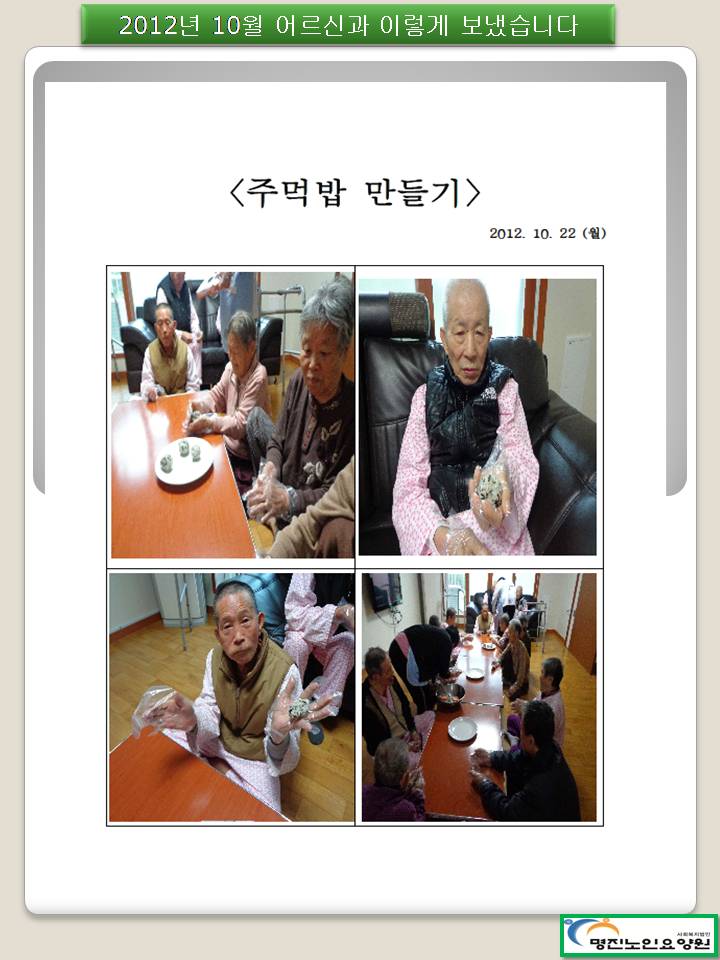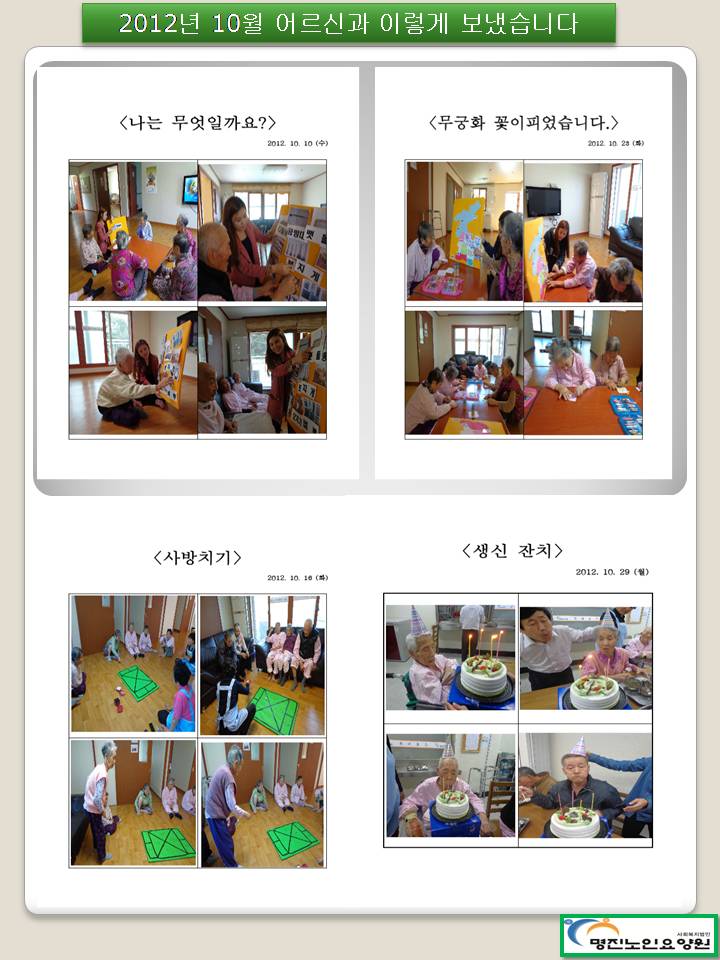 12년 10월 어르신과 이렇게 보냈습니다.
